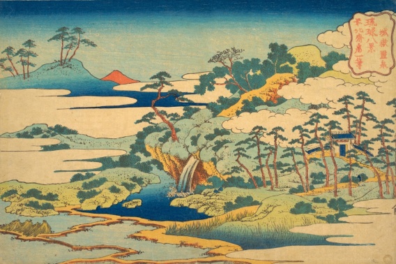 • Obraz ukiyo-e: "8 widoków Ryukyu: 07. Jogaku — święte źródło" - Katsushika Hokusai